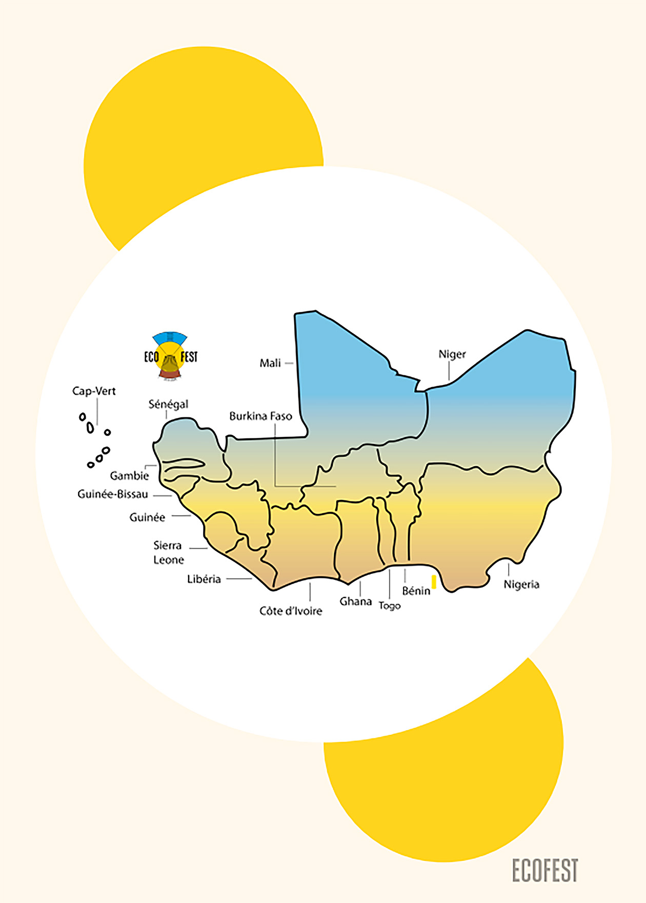 Biennal, l’ECOFEST ambitionne de devenir la référence culturelle rassemblant la richesse et la diversité des expressions artistiques de l’Afrique de l’Ouest. L’événement vise à stimuler un dialogue ouvert entre les artistes, les acteurs culturels, les institutions et les citoyens, afin d’explorer les réponses que la culture peut apporter aux mutations actuelles. Le festival se veut ainsi un véritable catalyseur d’unité, de renforcement  de cohésion entre les peuples à travers un dialogue interculturel porteur de tolérance, de respect mutuel et le développement.